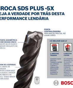 - La broca SDS plus-5X ofrece una perforación altamente eficiente en hormigón armado.