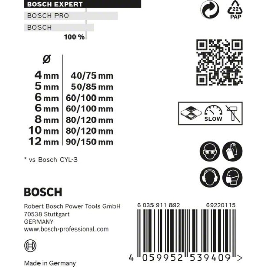 Hasta 5 veces más precisa que la broca Bosch CYL-3 – En las obras de construcción actuales es necesario trabajar con muchos materiales diferentes, y nunca se sabe qué habrá que perforar a continuación. Encontrar la broca adecuada puede ser difícil y llevar mucho tiempo, a menos que dispongas de la broca EXPERT MultiConstruction. Esta broca altamente versátil puede perforar con precisión y sin patinar materiales duros como el granito por su punta afilada y su diseño geométrico avanzado. Fabricada con carburo optimizado mediante nuestra técnica de fabricación de desbaste fino, también se puede utilizar en hormigón, ladrillo, azulejos blandos, madera y metal. Siempre puedes realizar un trabajo profesional, en cualquier material. La broca cilíndrica Bosch EXPERT CYL-9 MultiConstruction es la broca que siempre debes tener en tu caja de herramientas: nunca deja un trabajo a medias ni te hace perder el tiempo buscando la broca adecuada. Vástago cilíndrico compatible con portabrocas de tres mordazas.